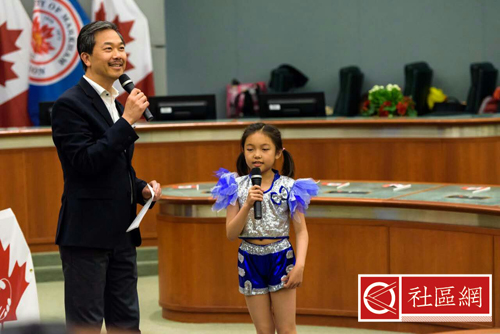 加拿大中文电台节目主持人李济民先生 和火花小公主冠军孙铭赫宣布大会开始,全场起立齐唱加拿大国歌。何胡景议员代表来宾向协会成立表示热烈祝贺,并向友乐天地长者协会转交了祝贺信。会长在致词中感谢各位贵宾和朋友的光临,介绍了友乐天地协会的成立得益于加拿大的蓝天绿地,太极拳是友谊的纽带。协会的目的就是,通过我们丰富多彩的活动,让更多的老人长者走出家庭,克服孤独感,广交朋友,使他们身心灵受益, 通过参与社会活动,进一步了解加拿大,喜爱加拿大,融入加拿大,让长者更有活力,更有生活质量。