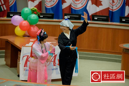 红枫晚霞腰鼓队和婷舞飞扬儿童艺术坊的活力小朋友们敲响了成立大会的序曲。友乐天地和前来助兴的邻近长者社团为联欢活动献上了一台丰富多彩的文艺节目,赢得了观众的热烈掌声和欢声笑语。太极拳,养生太极掌长,柔力球一招一式凝聚着日常的功力;男声小组唱《友谊就是力量》,在铿锵有力的旋律下,把长者向着快乐、向着友谊、向着健康,向着幸福生活前进的正能量充分发挥出来;三句半《友乐天地大家庭》,把长者在友乐天地里相聚交流,享受欢乐和友爱之情油然而生,感谢政府和朋友对协会成立的支持;飘扇舞–我的中国心,演绎爱我中华,振兴中华之情;双扇舞—主啊你最美,婀娜多姿,如少女们翩翩起舞。来自美国的琵琶老师的琵琶合奏, 京剧清唱,列支文山长者的口琴独奏,展示了多彩的中国文化。