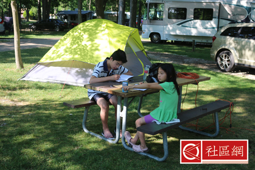 在沙滩玩了差不多2个小时,我们又返回营地。吃了点水果之后,我带着小孩去附近的Trail走了一圈。在5:30的时候,我又开始生活,自己感觉有些饿了。烤鸡腿、面包当作晚餐,而红薯当作主食。吃完之后,我们再次去沙滩。但这次我们玩了不到1个小时,当太阳光逝去的时候,水就显得更冷。游泳之后,我们去淋浴。回到营地,我们将湿衣服晾好,吃了两个橙子。儿子感觉到有些累,就先行睡去,而女儿就一直在看书。笔者自己仍坐在外面的凳子上,爬格子。