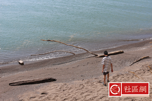 穿过桥,走出不远就是一个比较大的小孩游乐场。女儿看到,就自主走过去玩了,而儿子特意跑到对面的沙滩看看。事实上,这里的沙滩好像还没有临近Campers Cove沙滩管理的好。