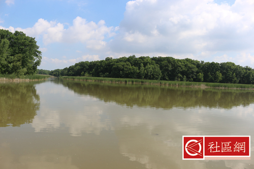 根据地图指示,我们走上Footbridge,这里其实是两条小溪,Sugar Creek和Boosey Creek汇合处延伸,再与East Branch汇合,再延伸成为Two Creeks。在笔者眼里,这些不应该是Creek,而应该是湖。走在木桥上,景观不错,多拍了一些照片。不过,有一段木桥测斜严重,估计是底桩偏离, 但愿这不是当年的“豆腐渣”工程。