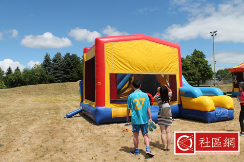 夏日骄阳难挡市民热情,欢呼声浪此起彼伏。足球场上无论成人与孩童、专业与业余各各乐在其中,免费雪榚车前排起长长队伍,小童弹跳床更是亲子乐园。
