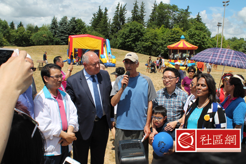 薛佳平市长的到来激起阵阵欢呼,市长盛赞来自世界各地、族裔相异的人们在到这里聚合成为同一个社区,关心、支援远方困境中的人们,值得所有人学习、致敬。何胡景议员也代表组委会向赞助、参与和支持活动的各界朋友表示感谢。