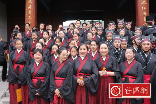 汉族自古就有成人礼仪,男孩子的叫做“冠礼”,女孩子的叫做“笄礼”。汉文化是礼仪的文化,而冠、笄之礼就是华夏礼仪的起点。为跨入成年的青年男女举行这一仪式,是要提示他们:从此将由家庭中毫无责任的“孺子”转变为正式跨入社会的成年人,只有承担成人的责任、履践美好的德行,才能成为各种合格的社会角色。通过这种传统的仪式,可以正视自己肩上的责任,完成角色的转变,宣告长大成人。汉族成年礼延续数千年,至满清入关后,满清统治者一纸令下,终结了绵延了几千年的成人礼,以致后来人只能在“不知不觉”中进入成年,现在正在逐渐恢复。