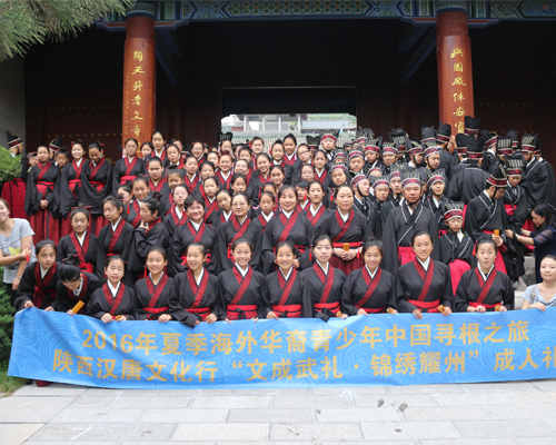 据了解,耀州文庙已经多次举办“文成武礼,锦绣耀州”活动。2016年“寻根之旅”陕西行的营员年龄大多是12-18岁之间。这个系列活动包括前一天晚上的汉服知识与礼仪讲座,当天早上参加文礼(冠笄之礼)、武礼(弓射之礼)仪式,同时让营员们与当地同龄学生开展书画艺术交流,力图让海外华裔青少年增加民族认同感。至于整个活动的准备,无论是主办方,还是参与者,大家都下了很大功夫,才得以成功举行。