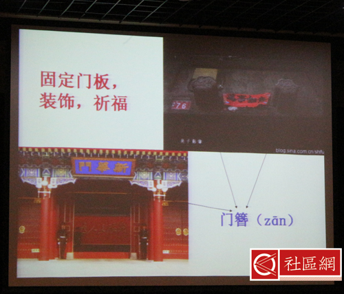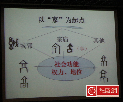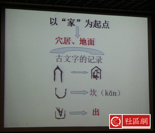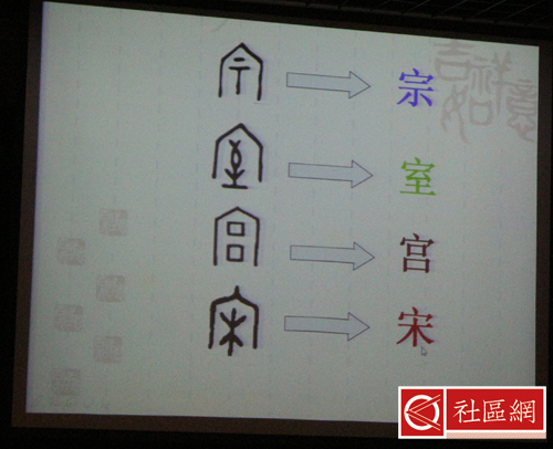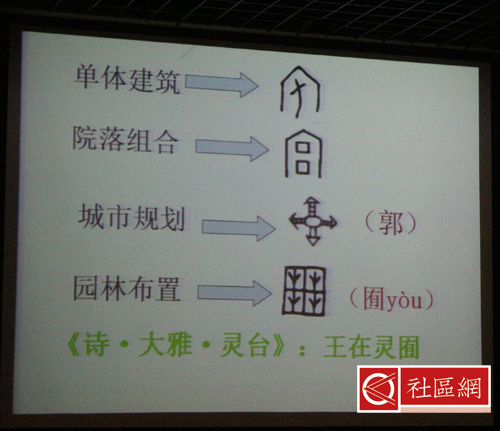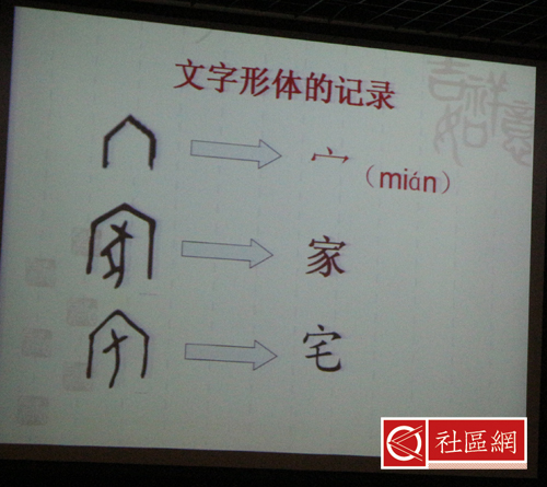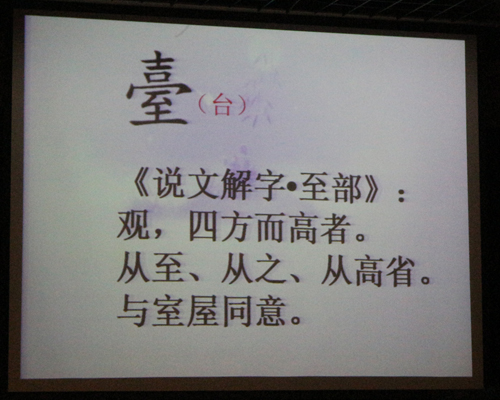 首先,邵英教授简单介绍了世界三大建筑体系,那就是中国、欧洲和伊斯兰,并强调指出,在西安大家都有幸能够看到所有。通过几组照片,让营员们初略知道三大建筑体系各自的特色。然后,话锋一转,谈到先人是如何纪录文化的,也就是象人文字的出现。比方说,笔画宝盖头的由来,以及由此衍生的词汇,包括家、宅、宗、室、宫和宋。