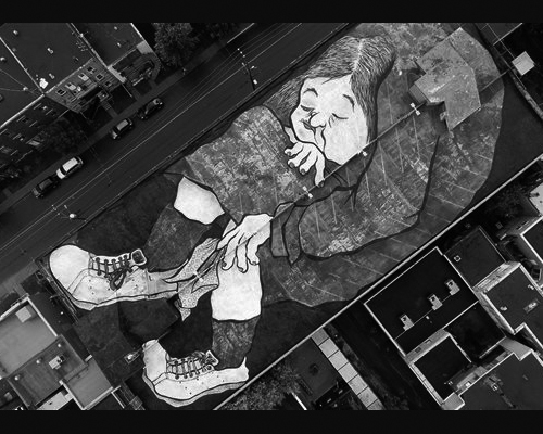Ella和Pitr是法国的两位壁画家,周游世界,留下自己的作品,两人还以Papiers Peintres的艺名出名。报道说,最近这两位艺术家来到蒙特利尔市,在 Rosemont区的一栋建筑物的楼顶上留下了自己的巨作。