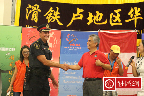 警局负责人Barry表示,联谊会在过去十多年为团结本地华人社区,丰富本地社区生活做了大量的工作,感谢潘刚主席的邀请,也非常乐意与大家共享周末。Shamrose在本地属于一个年轻的组织,成立于2012年,在过去一年内,主要关注叙利亚难民的安置,Helen借此机会感谢Kitchener市政府对难民的支持,感动于华人社区对安置叙利亚难民的积极奉献。