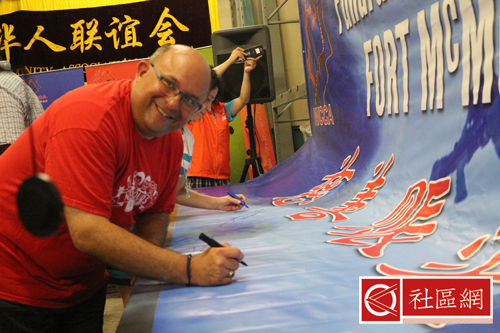 嘉宾在赈灾招牌上签字,计划送往Fort McMurray