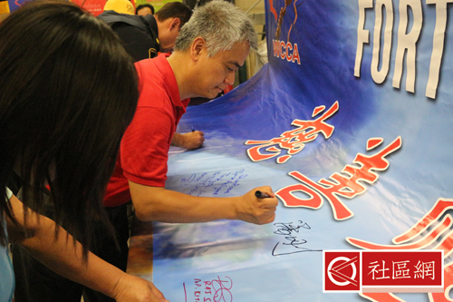 也就是在中午时分,一场大雨如期而至。户外运动场地不得不暂时停止运行,正好将所有会员吸引到室内,华夏节活动也可以正式开始了。赶到活动现场的嘉宾包括有联邦国会议员Raj Saini,Kichener市长Berry Vrbanovic,滑铁卢地区北分区警局(Waterloo Region Police Service, North Division)Superintendent Barry Zehr和Bryan Lakin,非牟利机构Shamrose代表Helen Rashi等。