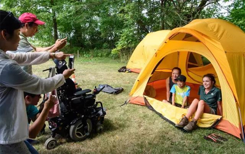 Aaron小朋友是我们今天活动中当之无愧的小明星!别看他坐着轮椅不方便参加我们的动手实践,但当美丽体贴的妈妈和他一同坐进妈妈和阿姨、弟弟搭好的帐篷里,他脸上绽放出阳光般灿烂的笑容。所有人的心都融化了!妈妈后来说:“什么时候组织下一场露营活动?我肯定带着Aaron一道来! 去年我带着老二参加过一次Camping,今天又有了专业训练,知识更加牢固了。最起码帐篷搭的很熟手。很感谢!”