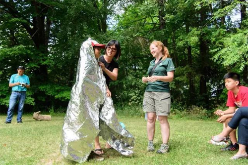 集训营正式开始,CCAA的大小会员们在Parks Canada的资深户外专家的带领下一起认真学习了搭帐篷、点篝火、营地炊事、Hug-a-Tree(安全防范)和与“户外的真正主人”和睦相处等课程。为了帮助有语言需求的朋友全面掌握培训内容,协会还配备了中文翻译服务。通过专家们的细心介绍和演示,大家掌握了户外活动用品的准备、安全措施、野营知识及秘笈。