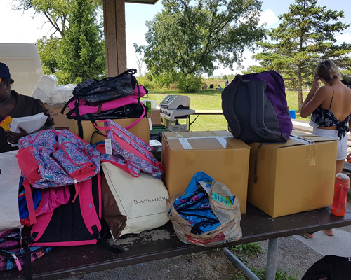Karen Lin介绍说, 因为时间仓促, 原本她的目标只是帮助Malton募款得到20个书包而已, 但是没有想到, 密市的华人团体和她自己的许多好朋友们热心捐赠, “做慈善, 毫不手软!”。一下子,大家为Malton Rotary Club和Zion Church募捐到100多个崭新书包, 这是Malton Back to School BBQ开展以来, 得到的最大一笔捐赠。