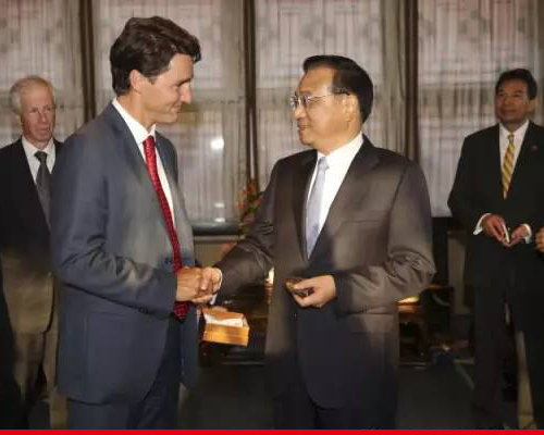 总理Justin Trudeau(贾斯丁·特鲁多)借参加二十国集团(G20)领导人峰会之机访问中国。特鲁多8月30日在北京强调,加拿大农产品安全高质。在8月31日中国和加拿大两国总理举行会谈后,中国总理李克强说,将通过法律途径处理两年前加拿大公民高凯文(Kevin Garratt)在中国被拘留一案。