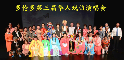 8月27日下午在多伦多Fairview Mall图书馆剧场内,粉墨缤纷,戏歌飞扬, 丝弦声声,舞台上下同唱着梨园欢歌。这里就是“多伦多第三届华人戏曲演唱会”的演出现场。