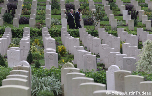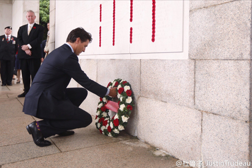 9月6日正在香港访问的总理Justin Trudeau(贾斯汀·特鲁多)前往西湾国殇纪念墓地(Sai Wan War Cemetery),悼念在二战香港保卫战中丧生的加拿大军人,并在加拿大军人墓碑前献了花圈。第二次世界大战期间,日本于1941年12月袭击香港,来自英国、加拿大、印度的军人参加了香港保卫战,但最终香港沦陷。在香港的墓地中一共葬有1,505名盟军的军人,包括283名加拿大军人。