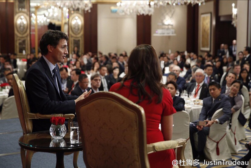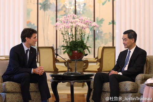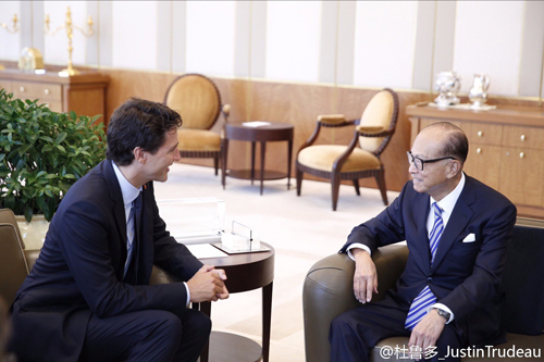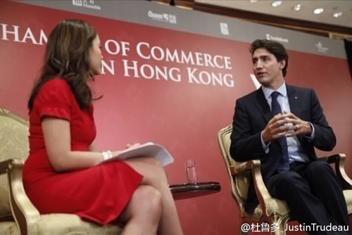 上午,贾斯汀·特鲁多与亿万富翁李嘉诚进行会晤,探讨如何促进加拿大和香港两地的贸易与投资。中午在香港加拿大商会主办的午餐会上发表了讲话,总理认为每一次面对面的交流都能加强商业和文化联系。而总理与香港特区行政长官梁振英会晤时,讨论深化加拿大与香港特别行政区之间的商业联系。香港是加拿大总理特鲁多对中国访问的最后一站。