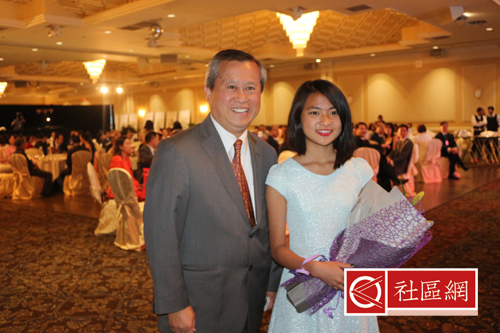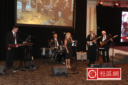 晚上6点开始,现场乐队音乐伴奏,客人们社交浓烈,而餐厅服务人员也忙碌起来,给大家端上寿司、炸葱卷、炸虾等美味。当然,假若您想喝上一杯的话,旁边的吧台已经开放,红酒、啤酒等应有尽有,当然是自费的。差不过7:30,加中两国国歌由13岁女孩May He Tesoro领唱,她9月份刚刚进入SBA高中的AP课程。据说,May是市长Frank Scarpitti特意邀请过来演唱的。May的精彩演唱让全场叹服,万锦区域议员李国贤为其献上鲜花,两市市长与其合影留念。