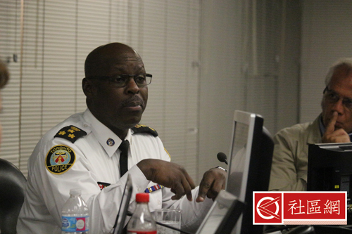 警察总长Mark Saunders是NEPMCC的老朋友,刚刚上任时就参加过NEPMCC的月度例会,并讲话。该次也在会议开始之初就来到现场。他的讲话主要就是介绍他上任后所做的工作,也就是对警察服务所做的调研。目前,内部报告已经出来,目前还在咨询和补充阶段,最终报告在年底或明年年初出来。之后,警察总长将根据这个报告,安排多伦多警察部门的未来工作。