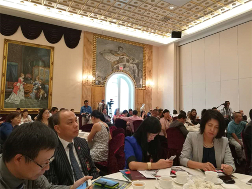 由加拿大华商联合会主办、全加华人联合会协办的“第二届加拿大华商企业家高峰论坛”与加拿大“首届杰出华商企业家颁奖仪式及欢迎中国侨联主席林军一行访加代表团庆典晚宴”于9月8日在钓鱼台国宴隆重举行,活动从下午两点半论坛开始一直持续到晚上十点庆典结束。这是一场大规模、高层次、具有相当专业水准的专题性商务论坛,论坛主旨是“促进加中贸易与投资”。来自加中两国的知名企业家、金融家、银行家、著名专家学者、社区侨领、三级政府官员以及近五十个省市级华人商会会员、主流社会非华裔著名商业团体领导人和中国侨商联合会的企业家代表团等近七百人参加了此次活动。联邦总理杜鲁多、联邦参议员胡子修、保守党主席安布罗斯、联邦国会议员陈家诺、陈圣源、蔡报国、黄陈小萍及中国贸促会、中国国际商会等政府组织与团体专门为此次论坛发来了贺信多达四十多份。