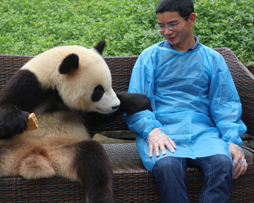 作为濒危动物,人类与大熊猫一直保持着一定的距离!这当然是保护大熊猫,同时也是保护人类自己。但最近,笔者在著名熊猫作家谭楷的帮助下,有机会与大熊猫亲密接触。这个机会之所以难得,就是因为实在罕见。那么,为何谭楷老师又能得到这种特别照顾呢?这与他的经历有关,过去36年,他一直在让大熊猫走向世界努力着,他的作品《国宝》获1981年《萌芽》奖、《我是大熊猫》获中国第三届科普作品一等奖。