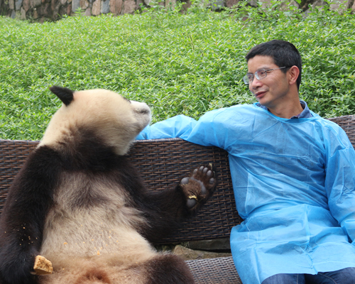 事后,司机告诉笔者,与贤贤照相时,他非常紧张,先怕大熊猫会扑过来抓他。但笔者没有一丝这样的恐惧感,即使在大熊猫试图抓我时,也一直是轻松自如的。与贤贤告别之后,我们才返回大门,进入到大熊猫公众展馆。