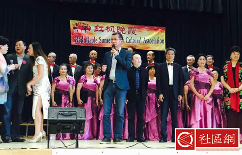组织者考虑十分周到,会场周围一百张图片展示了红枫晚霞八年来所走过的路程,无数初到加国的华人耆老爱上了红枫晚霞这个老年社团,他们在这里找到了家,团里除了每周五的综合活动外,红枫晚霞艺术团还开设合唱、舞蹈、腰鼓等专业队伍,另行安排时间定期学习和排练,联欢会开始前的图片展吸引了早到者的眼球,人们期待着在联欢会上一睹红枫人的风采。