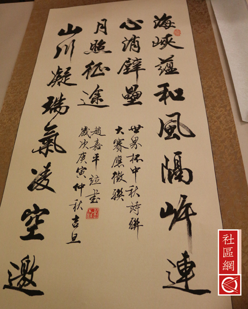 除了元植老师的作品之外,现场还有大家熟知的,本地中国画家廖荷花的数件作品。假若读者能够现场体验,您可以体验不同风格的荷叶与荷花哦。另外,赵嘉平老师也在现场展示自己的书法,据了解赵嘉平老师书法作品以承传二王、赵孟頫和麦华三为主,博采诸家,师法传统,心追造化,力求自主自立,精心求变求新。