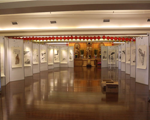 10月3日,计划中的2016加拿大东方文化周的第一天,记者早早前往多伦多灵岩山中华寺,弘一法师书画展在这里举行。记者赶到时,释照续法师和一批义工还在忙碌中,正在布展。