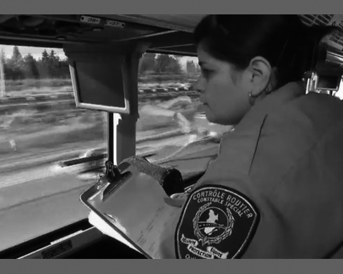 报道说,加拿大魁北克省警方在实验让警官在大巴车上居高临下观察驾车者的办法来查出边驾车边发短信的违规司机。警官Isabelle Gaudreau说,驾驶巡逻车的警官不容易看到的东西在大巴车上居高临下可以看得一清二楚:可以看到不少驾车者把手机放在驾驶盘上、放在膝盖上发短信或者是打电话;还可以看到不少驾驶载重卡车的司机不系安全带的情况。