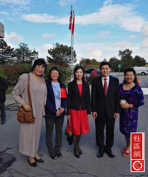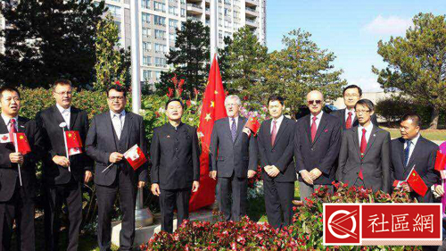 中国驻多伦多总领事薛冰及夫人与组织者约克区加华联会主席吴建忠医生日一起全程参加了从上午10时烈治文山市、中午万锦市及下午3时旺市的升旗仪式,三个城市的三级政府官员都积极参与,社区华裔侨领也纷纷到场与民众在异国他乡共同欢庆国庆。各市参与的三级政府官员包括联邦移民部长麦家廉、华裔国会副议长陈家诺、国会议员Majid Jowhari、安省贸易厅长陈国治、安省创新厅厅长莫伟力、烈市市长Dave Barrow、万锦市市长薛家平、旺市市长Maurizio Bevilacqua、区域议员许士杰、Namara Armstrong、市议员廖立晖、何胡景、杨绮清、赵善江、杨仕婷等。