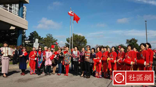 三个市当地的民众及各华裔团体也到现场表演助兴,如红枫晚霞老人协会穿着鲜艳的服饰表演的合唱及腰鼓,还有万锦市第六选区老人会表演的花鼓舞,都为现场增添了节日气氛。该活动的举办让身在海外的华人同胞暂解思乡之情,同时也感受到祖国的强大让身在海外的华裔感到自豪,仪式结束后大部分的民众都表示感到非常激动。(主办方供稿,部分图片来自红枫晚霞老人协会)