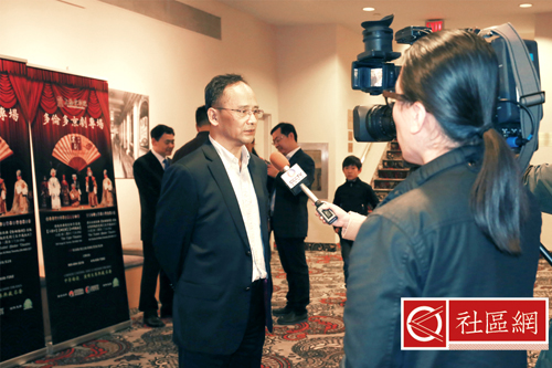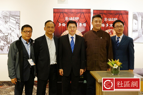 薛冰总领事、董晗鹏议员、单跃进院长与联合主办机构加中文化发展协会高如东会长,加拿大国际电视台副台长郭然共同合影