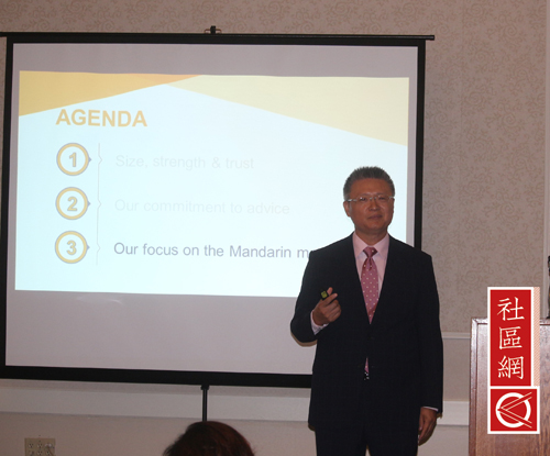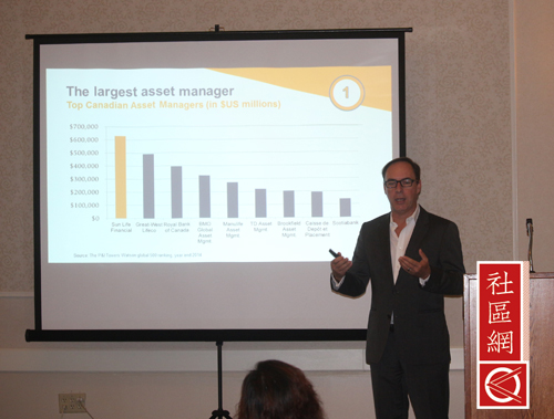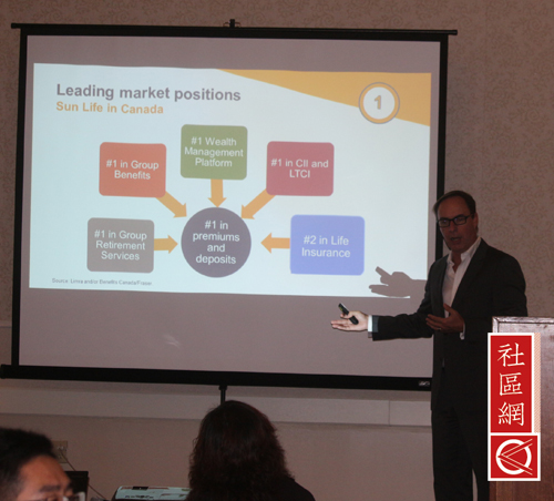 在总裁高可重博士讲话之后,来自Sun Life的领导团队,包括Stephane Vigneault、Joseph Lin、Sarah Leppard-Archer和Fanny Xu就公司历史、业务服务、近年成长参数、华裔社区服务、以及具体保单填写等方面做了四个专题讲座,大家获益颇多。最后,社区名人洪天国先生就自己移民加拿大之后,打工、创业,以及与Sun Life结缘22年,并决定誓不退休,继续这段情缘的决心与大家分享,博得掌声阵阵。