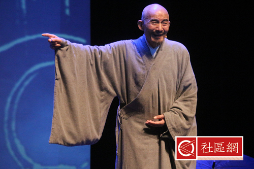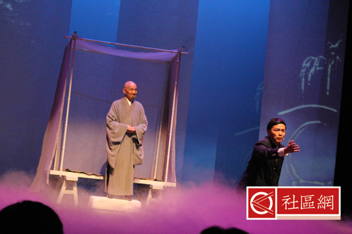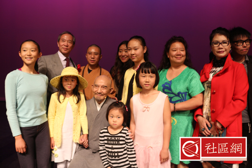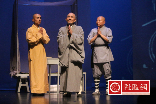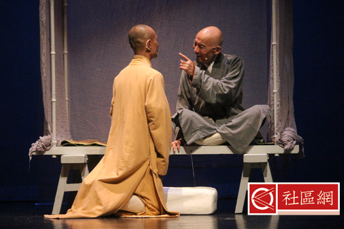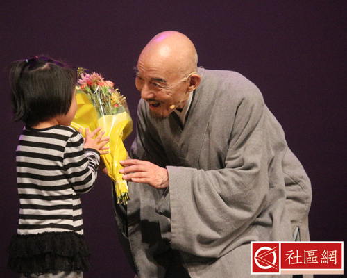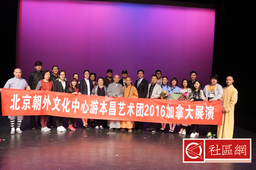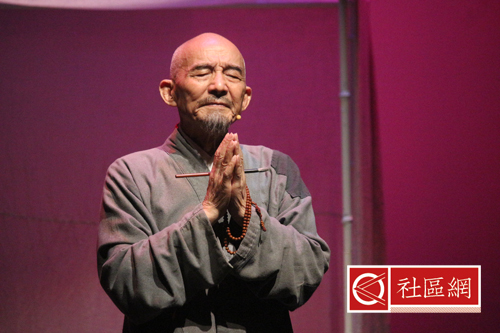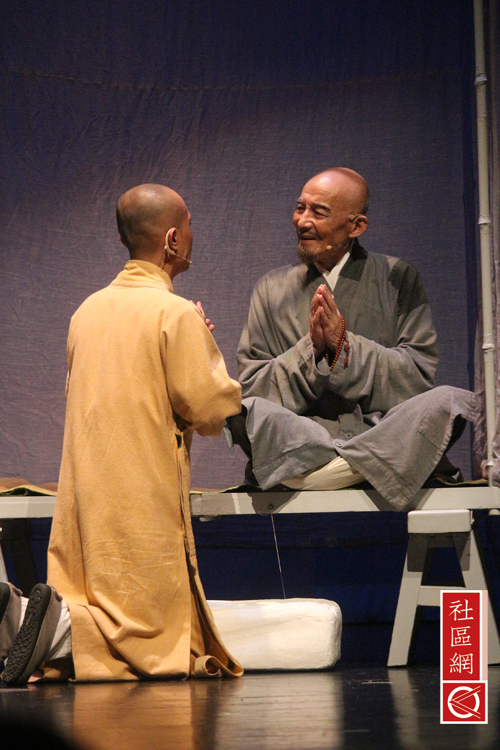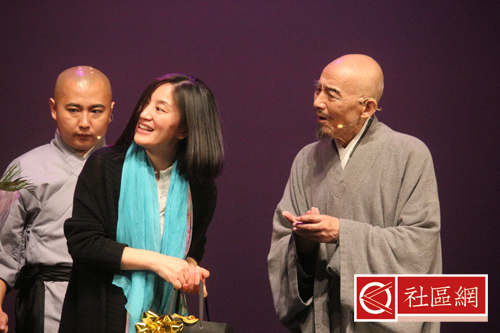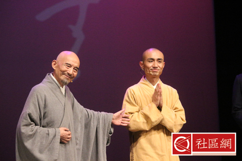 “修佛越久,人相越善。20多年前诙谐狡诘的‘活佛济公’游本昌年过8旬,已经慈眉善目,演一代高僧‘弘一法师’正是不二人选。话剧《弘一法师–最后之胜利》今晚在多伦多的演出是第101场,意义殊胜。游老爷子张弛有度、游刃有余,舞台功底没得说。来祝贺的MP的助手们直称游老作弘一法师,您说是口误还是真心认同、赞叹?”