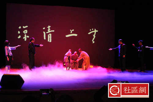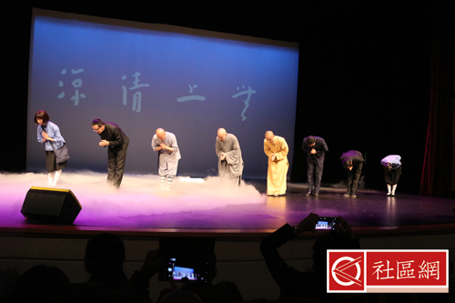 上面转述了如此多观众的评论,作为现场观众之一,记者当然也有自己的观察和体验的。记者右边坐着的是该次活动赞助商之一–成都市乐兮生物科技有限公司负责人。在演出过程中,该女士一直擦拭眼泪不断,后来她告知记者,“实在是太感人,太感动了!”她应该是看过“济公”方面的电影或电视连续剧的,对弘一法师生活的那段历史比较了解,能够很好地理解故事情节,随着情节起伏,情绪悲动。