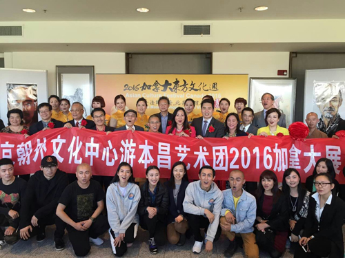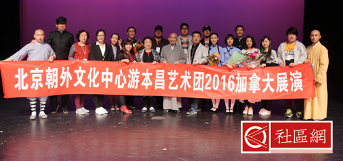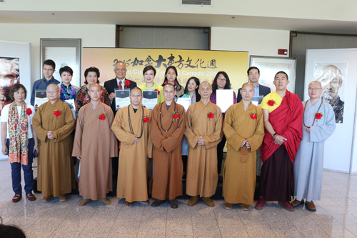 侨务领事杨葆华和王振、中华寺释照续法师等和游本昌艺术团成员合影