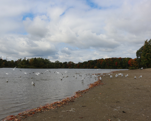 沙滩上的水鸟,在笔者走近时倒也毫无惧意。也许是看到笔者的相机,竟然突然飞起,让笔者抓拍水天下的飞鸟,谢谢它们。岸边的树林,绿色偏多,匆匆拍下几张照片,笔者就准备离去。看来,要是抓住秋意,笔者还得去Shade’s Mill一趟的。