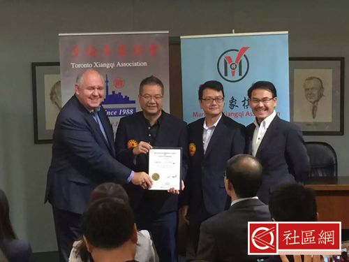 “象棋在加拿大”之“棋无界,情意长”象棋文化沙龙10月8日在万锦市举行。这是中国象棋协会主办、ABDT北美公司、加拿大中华艺术协会、多伦多象棋协会和万锦象棋协会共同协办,中国驻多伦多总领馆支持的活动,旨在弘扬中华传统文化。万锦巿市长薛家平(Mayor Frank Scarpitti)、市议员/社区服务委员会主席何胡景(Councillor Alan Ho)及棋会主席阮国衡在万锦市政厅举行开幕典礼。