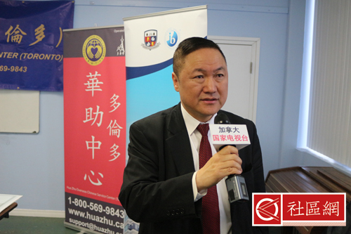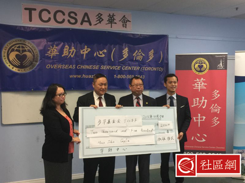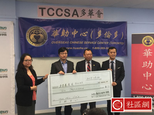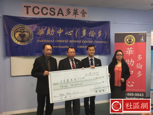 10月17日多伦多华助中心召开新闻发布会,展示多个机构与个人为其捐款,帮助其服务华社的慈善活动。华助中心理事会主席郑永麟借此机会感谢支持者,将以更好的服务回馈社会。华助中心全称为“海外华侨华人互助中心”,多伦多是去年8月由中国国务院侨务办公室首批授权挂牌中心之一,全球18处,加拿大首家。目前,该中心有多华基金会赞助,多华会承办。
