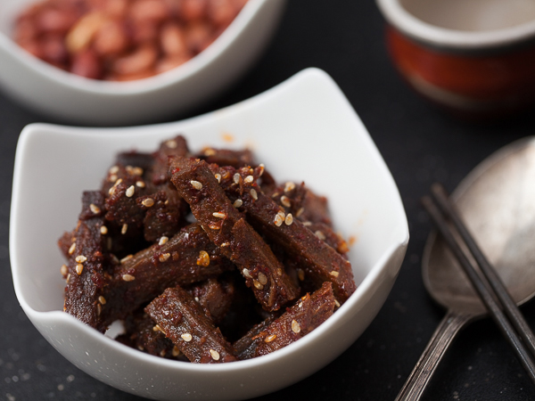一食堂(39):麻辣牛肉干 通过 作者:胖哥 - October 25, 2016 在Facebook上分享 鸣叫在twitter 书上说的,成吉思汗非常厉害,会弯弓射雕,有个干儿姓郭,特别能打架,而且老成自己还是个特级厨师,人们都说他发明了羊肉火锅丶萨琪玛丶烤肉、牛肉干。他曾经圈了地球陆地表面的三分之一,光囤地不开发,名气太大,枫叶国海关至今都严禁他发明的牛肉干入境。不过重庆的合川,老成亲儿也都搞不定。想吃合川口味的麻辣牛肉干怎么办,自己做。 把牛肉切大块。 加上大葱,用压力锅煮半小时。 煮好的牛肉放凉后切片,再切成1*1*5厘米左右的条。 把牛肉条下油锅爆炒。 牛肉条开始出油后,加上辣椒粉、花椒粉,小火继续翻炒。 出锅前放上芝麻。 凉后放进冰箱,隔天再取出来下酒。 相关文章 六块腹肌也难挡 卡尼与特朗普见面,期待吗? EQ银行收购PC Financial,PC Optimum积... 西媒看美俄莫斯科会谈 多伦多华联总会新届常委拜会总领馆 渥太华再向乌克兰提供$2.35亿援助 发表回复 取消回复