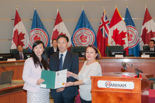万锦市市长发来祝“侨梦苑”多伦多推介会成功举办牌匾