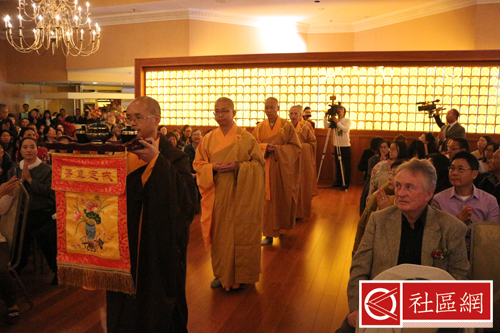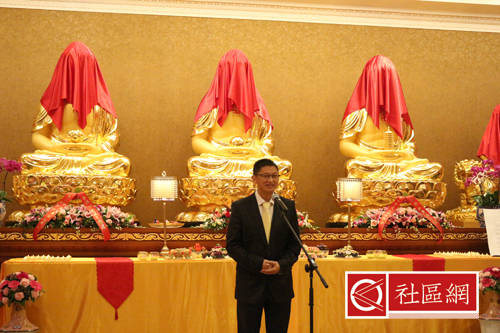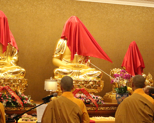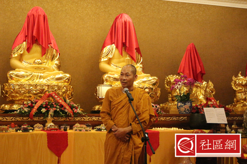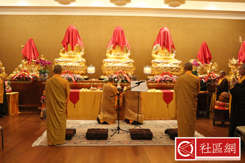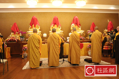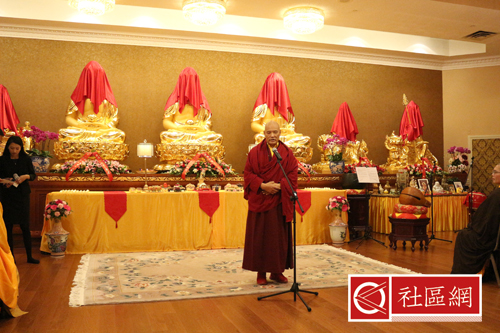 11月6日,阳光特别灿烂,上午10时位于旺市的大觉寺(Great Enlightenment Buddhist Institute Society Toronto,简称Gebis Toronto)为新近落成之近七千尺佛堂与三大佛像四大菩萨像举行了一场隆重的安坐开光典礼。近六十位法师参与此盛事,并有各方僧咖、政要和嘉宾200多人观礼,场面十分庄严、隆重,众人皆大欢喜。
