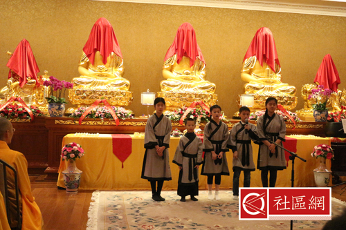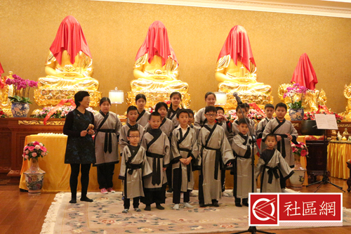 在安坐开光典礼进行前,大觉多伦多中心儿童读经班安排两组小朋友背诵经典,而青年团队温馨的颂歌表演,让大家心静如水。至于家长班代表在介绍自己参加学习之后,家里面“争吵声少了,笑声多了”,估计现场所有人都能感受到读经的意义了。
