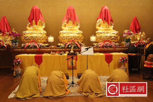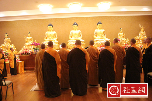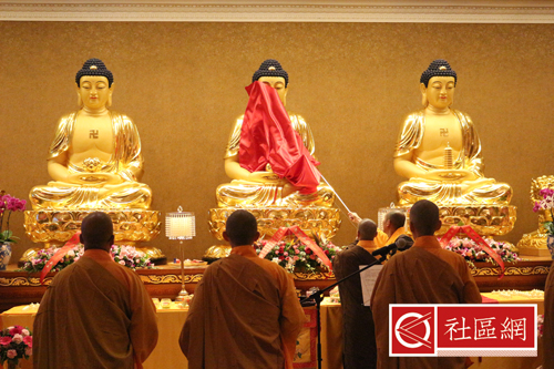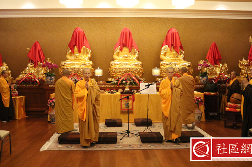 安坐开光仪式典礼在庄严肃穆的钟鼓香赞梵呗声中揭开帷幕,以性增法师等四位主法法师引领僧俗二众,殷重请来十方诸佛以大悲威力为佛菩萨像加被开光。开始唱的是《戒定真香》,云:“戒定真香,焚起冲天上。弟子虔诚,爇在金炉上。顷刻纷纭,即遍满十方。昔日耶输,免难消灾障。南无香云盖菩萨摩诃萨。(三称)。”据查证这是元代临济宗僧中峰大师所集结,是法会必用的梵呗唱诵偈语,言简意赅,道出戒定香之真实义。