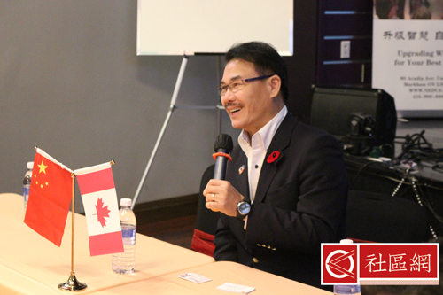 在专题演讲中,何议员首先扼要介绍加拿大三级政府制度及其所各负责的事务,以及加中之间的紧密经贸交流与文化建设的大环境。接下来,何议员从万锦地理着手,介绍该市的投资环境与发展潜力。他指出,万锦处于大多伦多的中心地带,以此为中心的辐射圈覆盖美国主要城市。作为加拿大的高科技之都,仅仅30多万人口的万锦公司就有1,000多家,而400多家企业将总部安置在万锦,其中包括大家熟悉的中国企业,诸如华为、中国银行等。