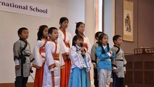 身着中国传统汉服,表演孝经背诵