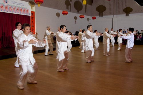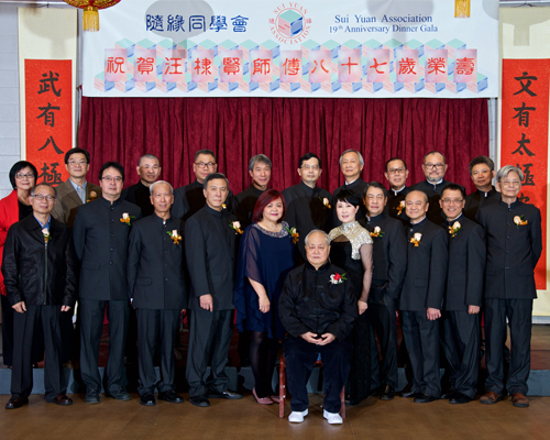 由曾获加拿大第一届全国武术家“终身成就”奖及加拿大传统太极拳联合会聘任为名誉会长汪棣贤师傅始创,现由谢舜乐任掌门的随缘同学会,日前假大多伦多中华文化中心举行十九周年餐舞会,并祝贺汪师傅87岁荣寿。到贺弟子及宾客共四百人,场面非常热闹。当晚的表演节目包括吴式太极刀配与多伦多中乐团二十多位成员一起演出、首次向外公开演示的走贯串吴式太极拳和随缘气功、由专业医生学员组成的“妙手仁心七剑侠”献唱、热情奔放的巴西森巴舞女郎与众同乐等。最精彩部分是汪棣贤师傅首次演示的八卦游身连环掌,让众弟子和徒孙从中观摩学习,获益良多。
