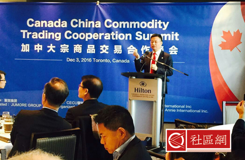 为了促进中国与加拿大在大宗商品交易在跨境电商平台上的深度合作,聚贸集团创始人、董事长陆宏翔先生一行5人组成的“加拿大高级采购代表团”于12月1日开启了加拿大大宗商品的采购之旅。由聚贸集团主办,CECU蒙特利尔论坛承办,Annie International Inc总策划的–“加中大宗商品交易合作峰会”于12月3日早上在Hilton Markham Suites Conference Centre成功举行。