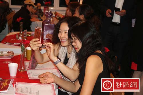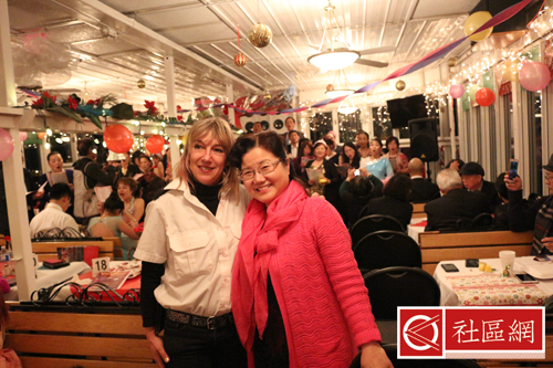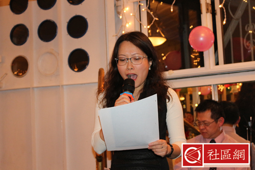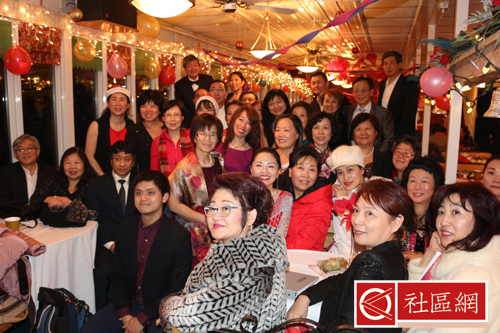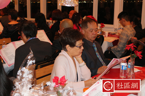 在朋友杜天梅的引荐下,记者一一见过主办方负责人Elsa Hsieh及其他一些相关人士,在指定座位坐定,这才有机会仔细大量周遭情况。在入口处右边,一棵好大装扮十分漂亮的圣诞树下面,堆着许多许多精心包装的礼物。之后才知道,这些礼物都通过幸运抽奖方式,赠送给各位宾客。一楼整个大厅当然都是圣诞节的经典装饰,让宾客自然而然地进入节日的氛围。大厅当然摆满了桌凳,有130多个座位。